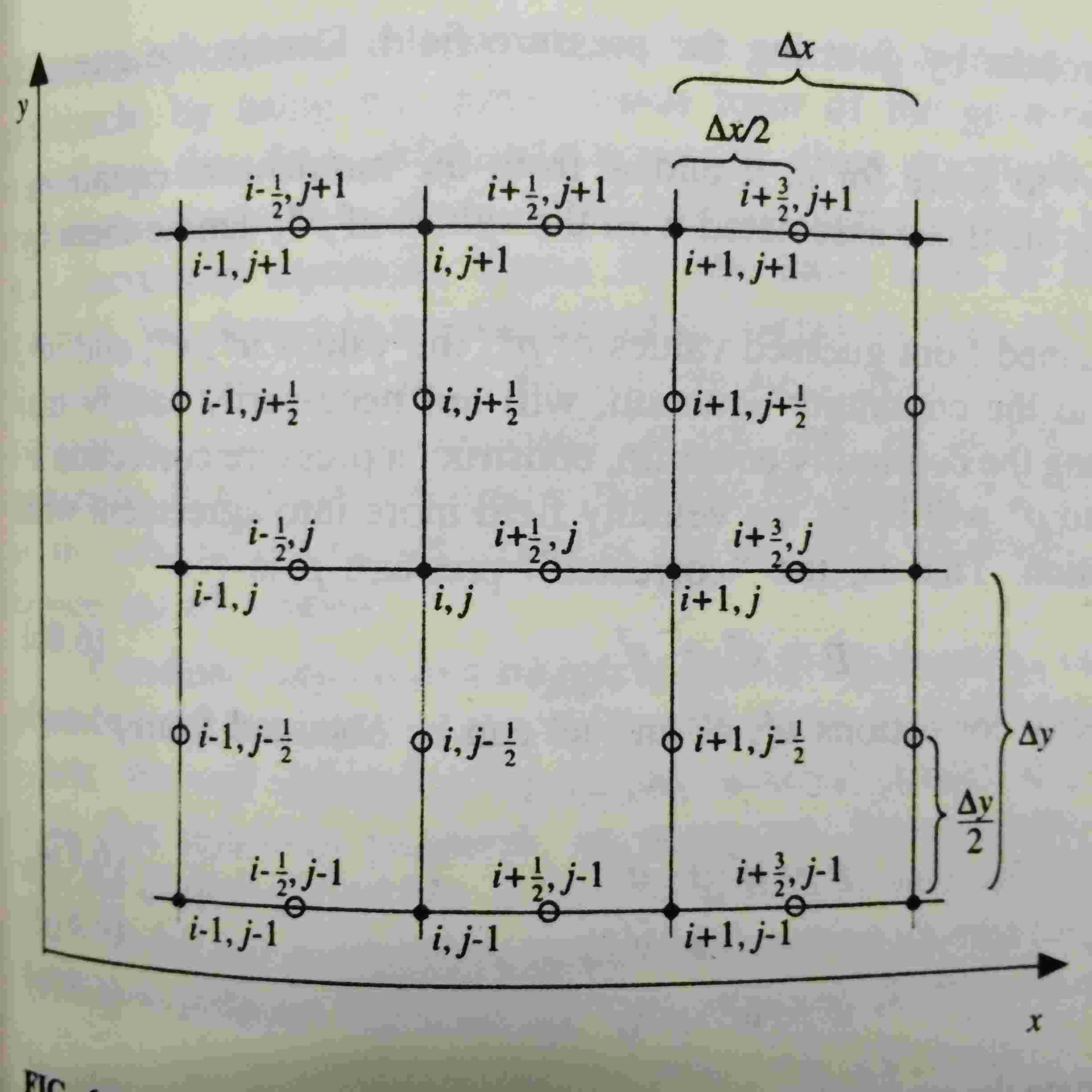 A staggered grid is illustrated as follows.