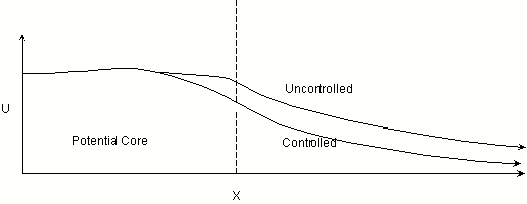 If we are able to control the jet, we should be able to change the length of the potential core, and the extent of the mixing layer.