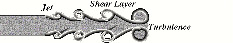 These structures are also referred to as “Kelvin-Helmholtz instability”. Consider what happens when the jet is axisymmetric: these structures would extend all round the jet. So they can be considered to be like: “Vortex Rings”, similar to what we see when someone is trying to impress everyone by blowing smoke rings. Smoke rings are vortical structures developing in the shear layer of a suddenly-accelerated jet flow, and they remain somewhat stable because the jet continues to accelerate upwards due to buoyancy, so there is continuous shear.